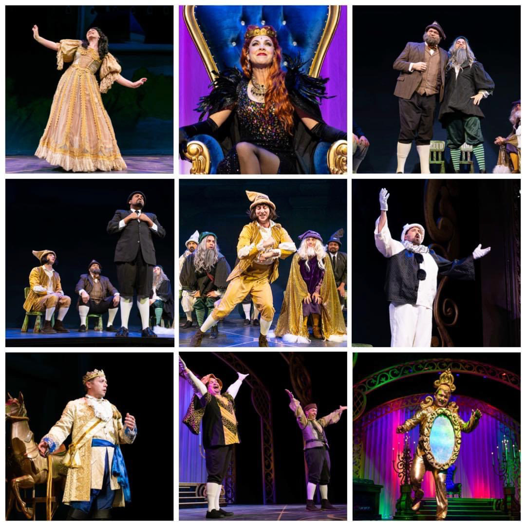 The Fulton Theatre opened a new lavish production of Robin & Clark’s Snow White on November 20, 2021. This first offering in the season’s Theatre for Young Audiences Series has already been held over by popular demand through December 30, 2021. Directed by Marc Robin the performances features Michaela Bolt as Snow White, Nathaniel Hackmann as Prince Charming, Katie Sina Kindig as the evil Queen Narcissus, and Alex Haydn Miller as the Magic Mirror. The seven dwarfs in this modernized version are based on historical figures. Jonathan Bryant plays Columbus, Randall Frizado is Scrooge, Aaron Pottenger is Martin Luther King, David Diehl is Caruso, Brian Padgett is Freud , Carlos Jimenez is DaVinci, and Austin Phillips is Merlin. The show plays concurrently with the main stage production of Rdogers and Hammerstein’s Cinderella, making the holidays in Lancaster a thoroughly magical experience! (Photos courtesy Fulton Theatre, Kinectiv, photographers)